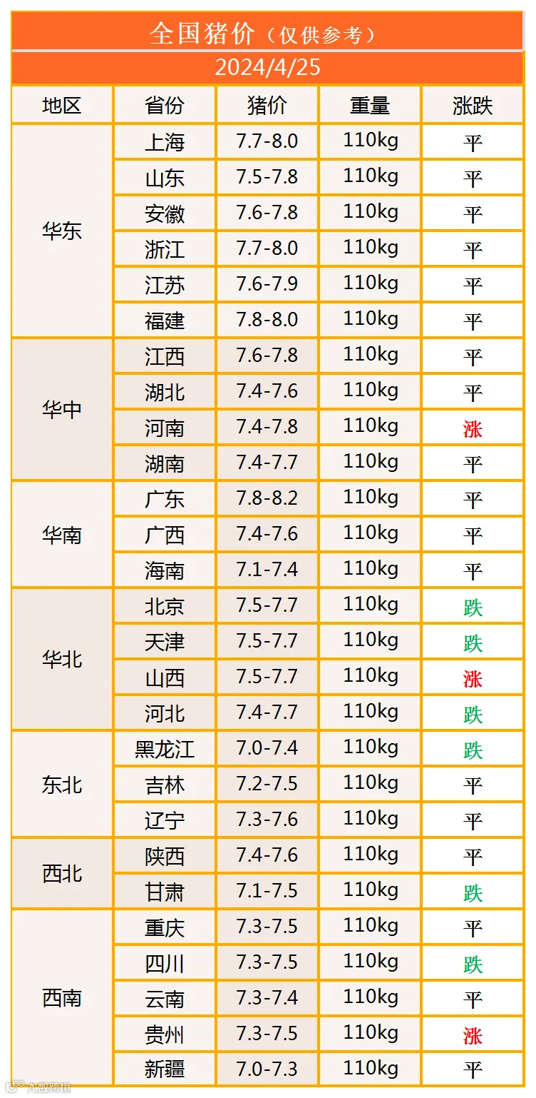 明日猪价2024年4月25日猪价信息