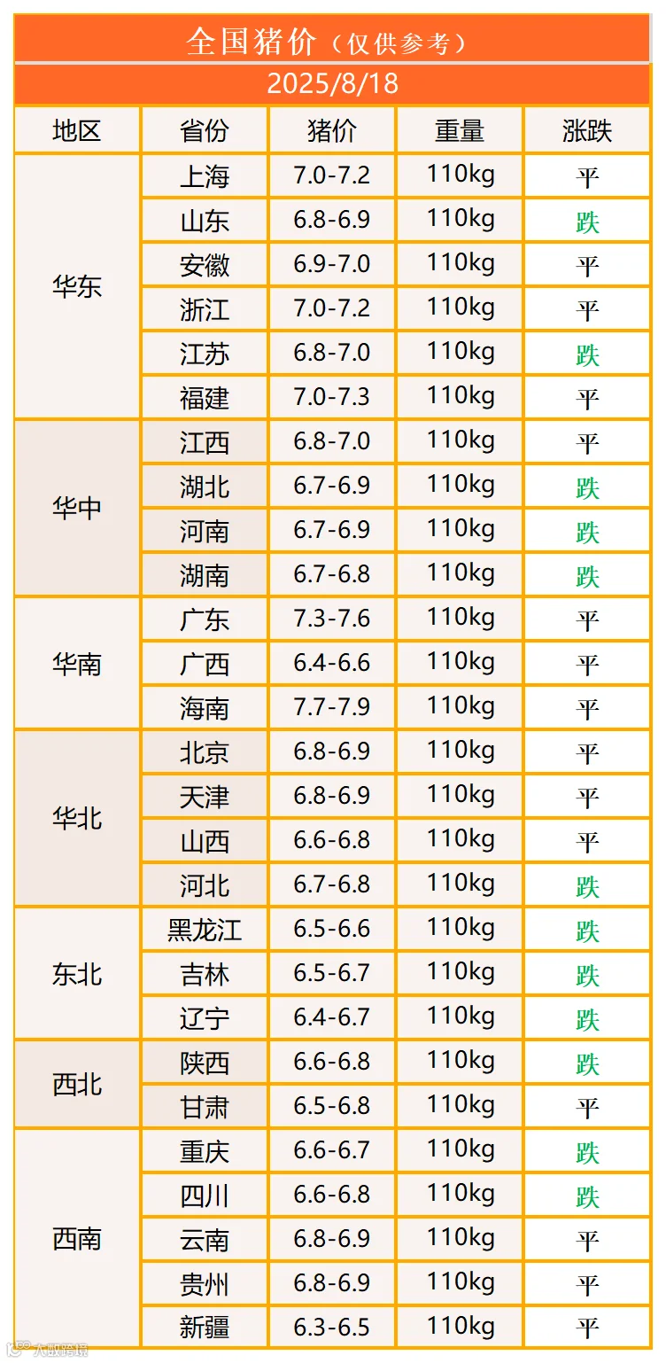 明日猪价2025年8月18日猪价信息