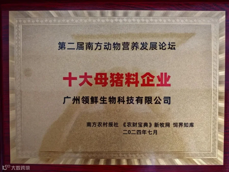 广州领鲜生物科技有限公司荣获十大母猪料企业奖实至名归!