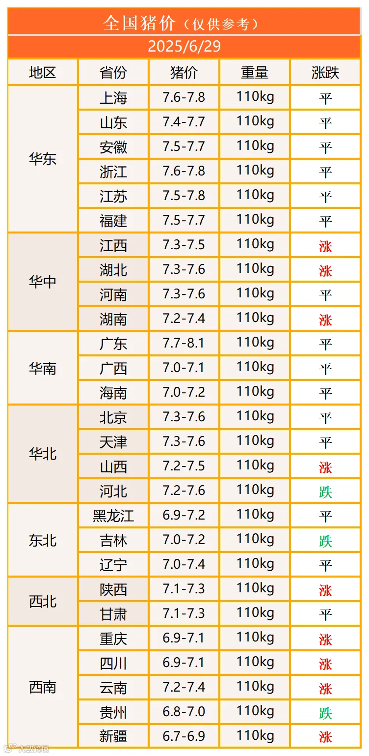 明日猪价2025年6月29日猪价信息