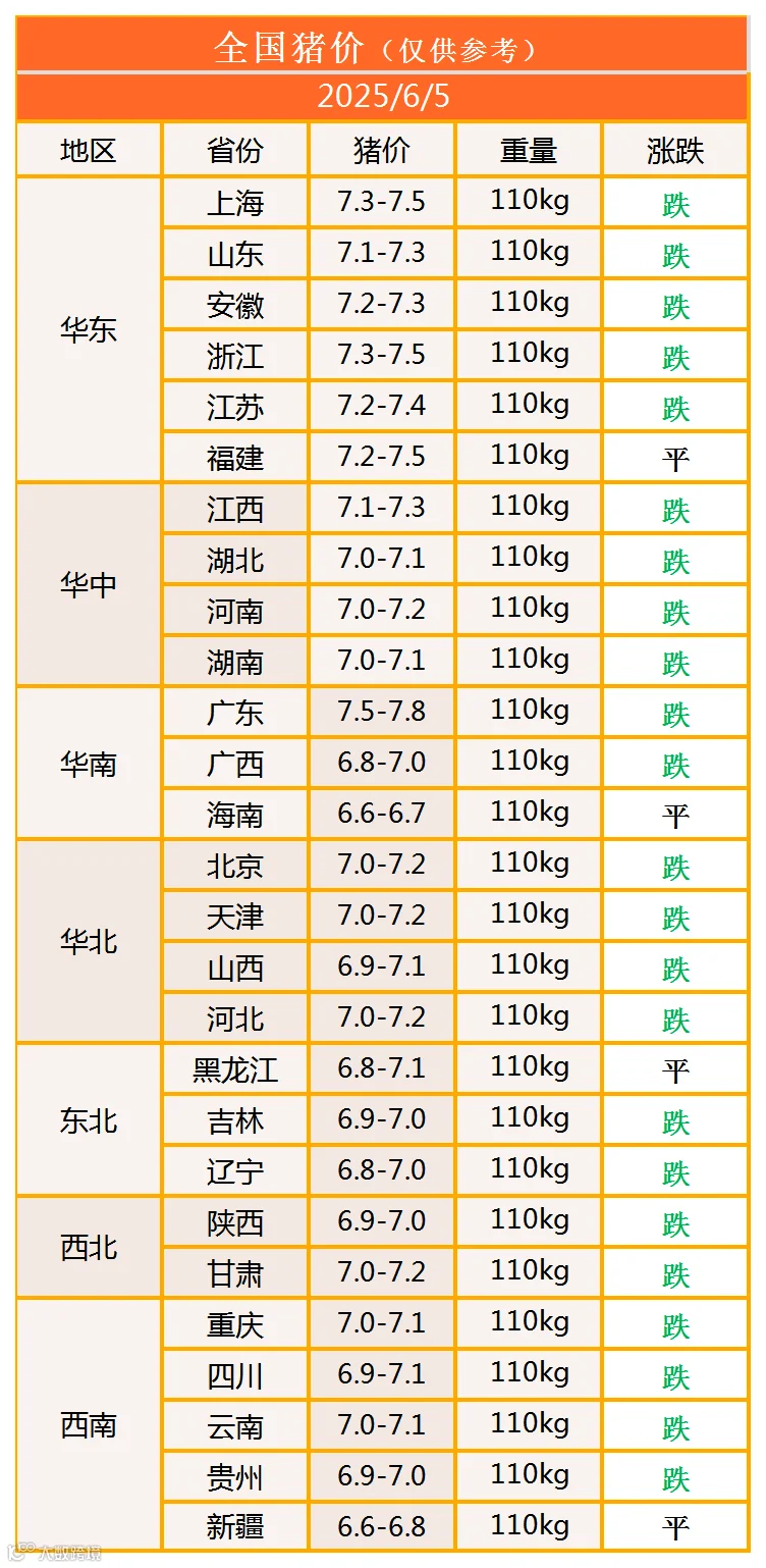 明日猪价2025年6月5日猪价信息