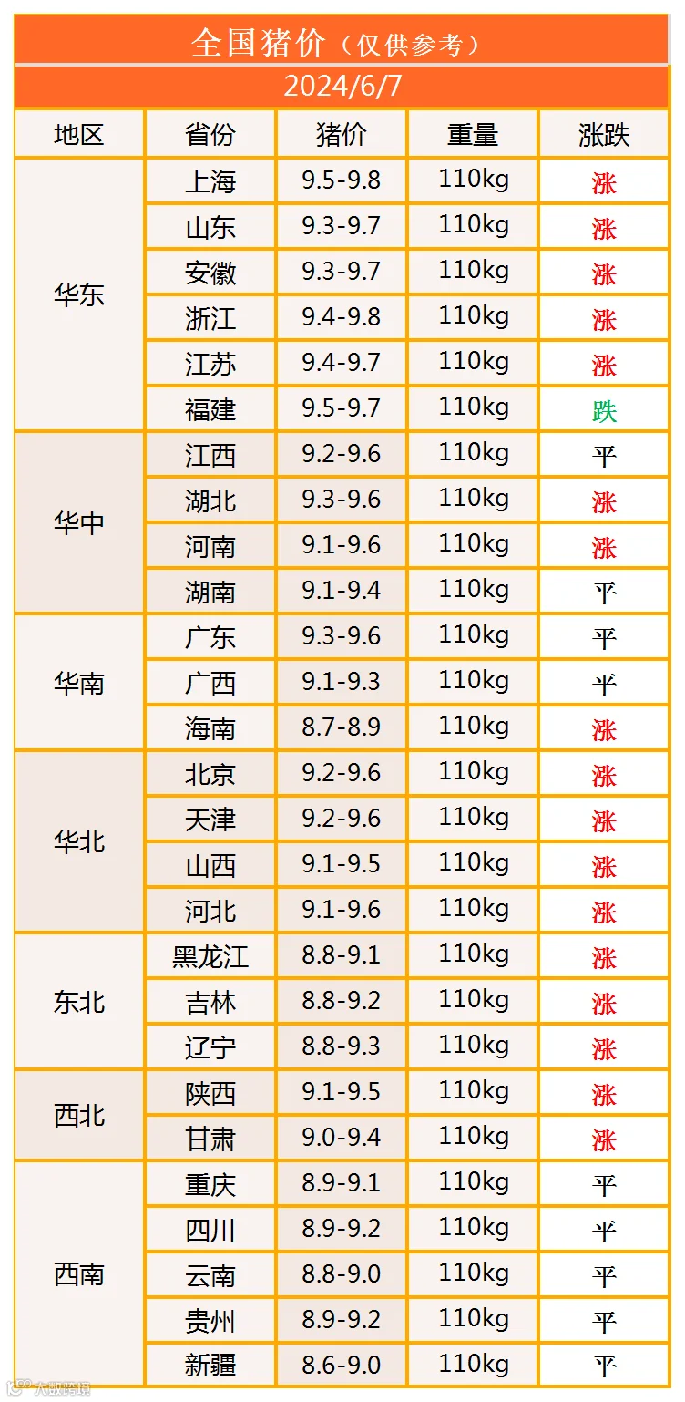 明日猪价2024年6月7日猪价信息