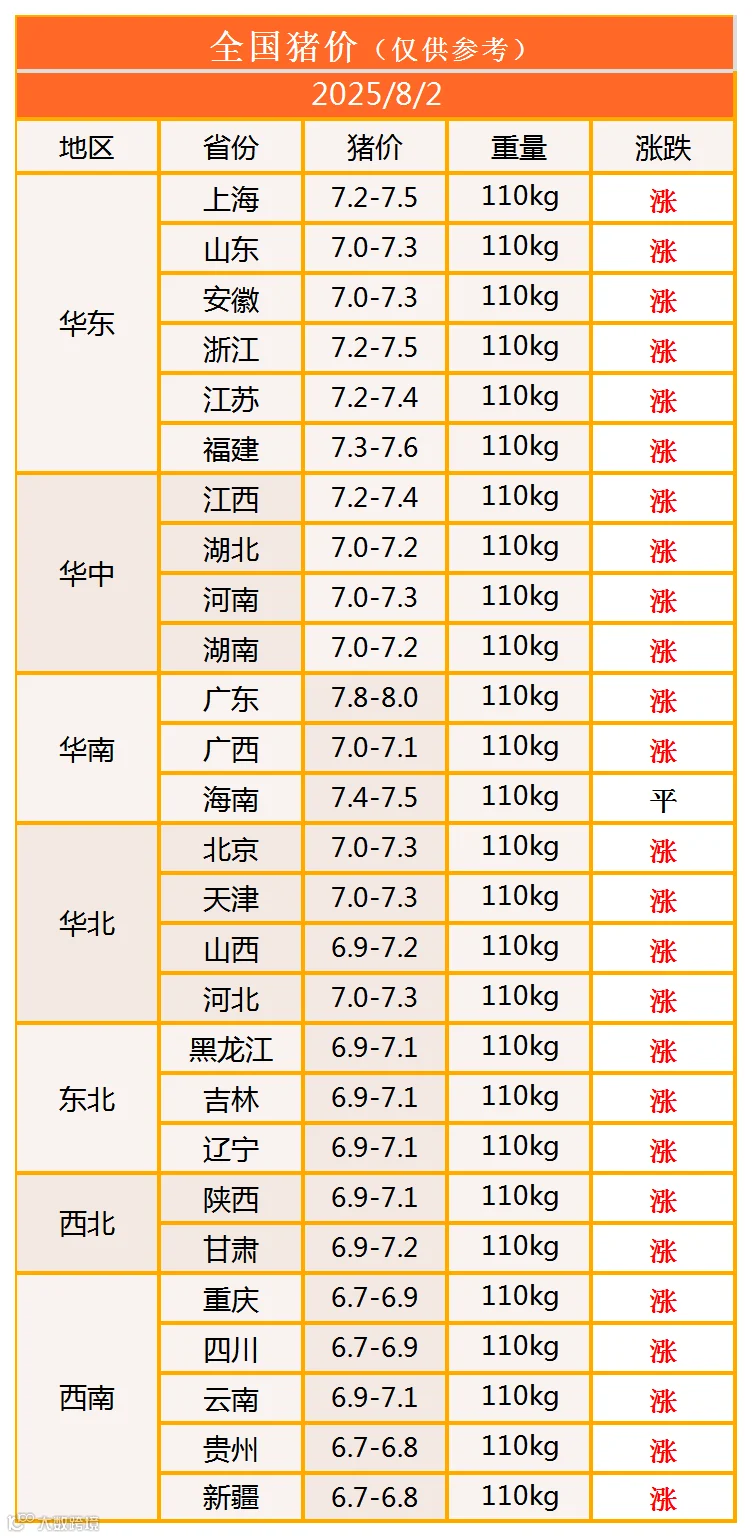 明日猪价2025年8月2日猪价信息