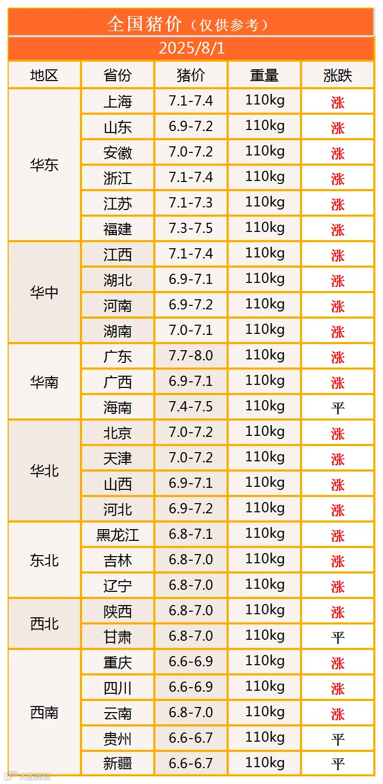 明日猪价2025年8月1日猪价信息