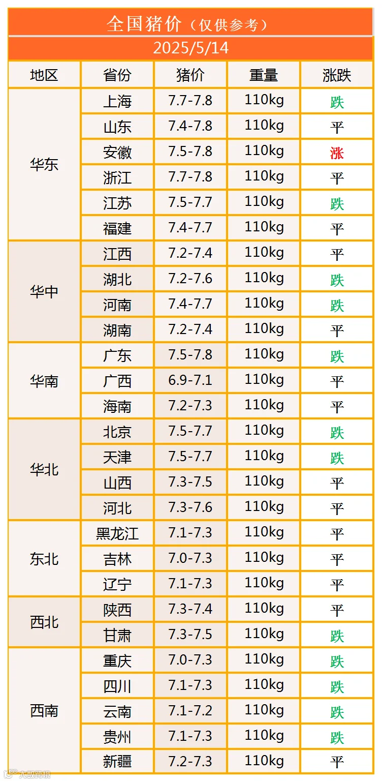 明日猪价2025年5月14日猪价信息