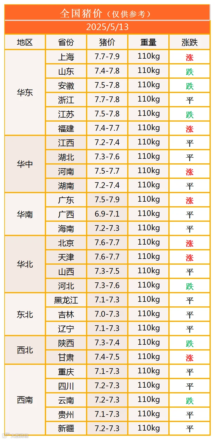 明日猪价2025年5月13日猪价信息