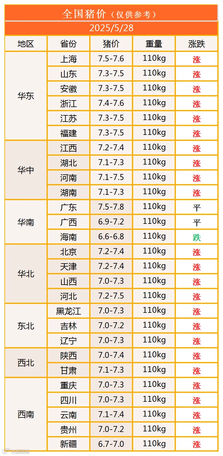 明日猪价2025年5月28日猪价信息