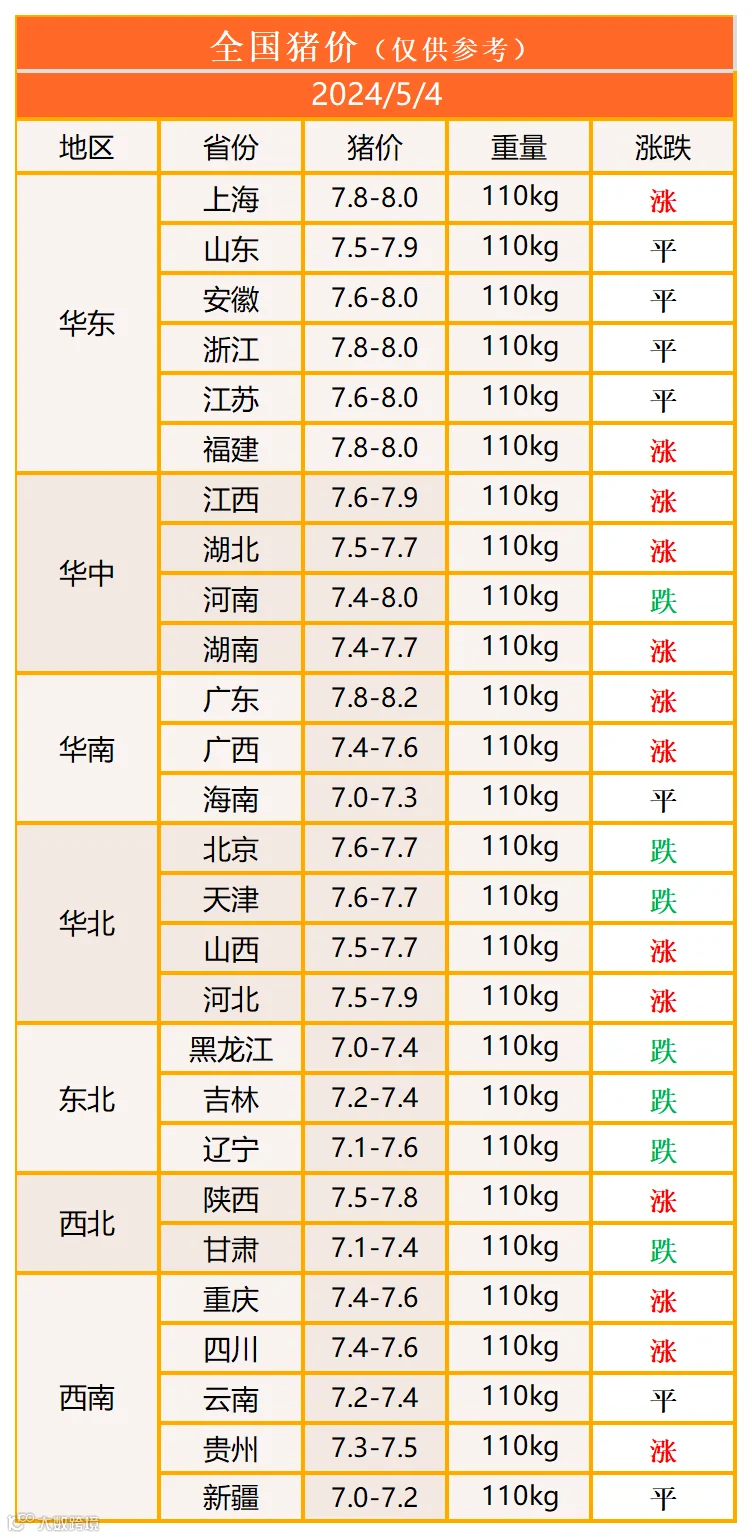 明日猪价2024年5月4日猪价信息