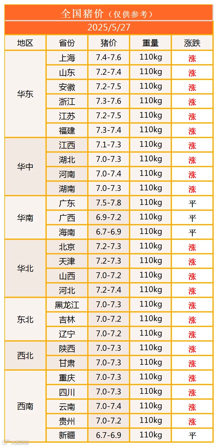 明日猪价2025年5月27日猪价信息