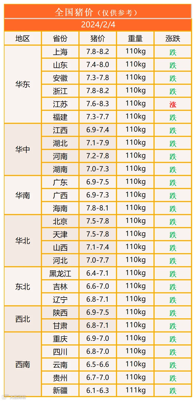 明日猪价2024年2月4日猪价信息