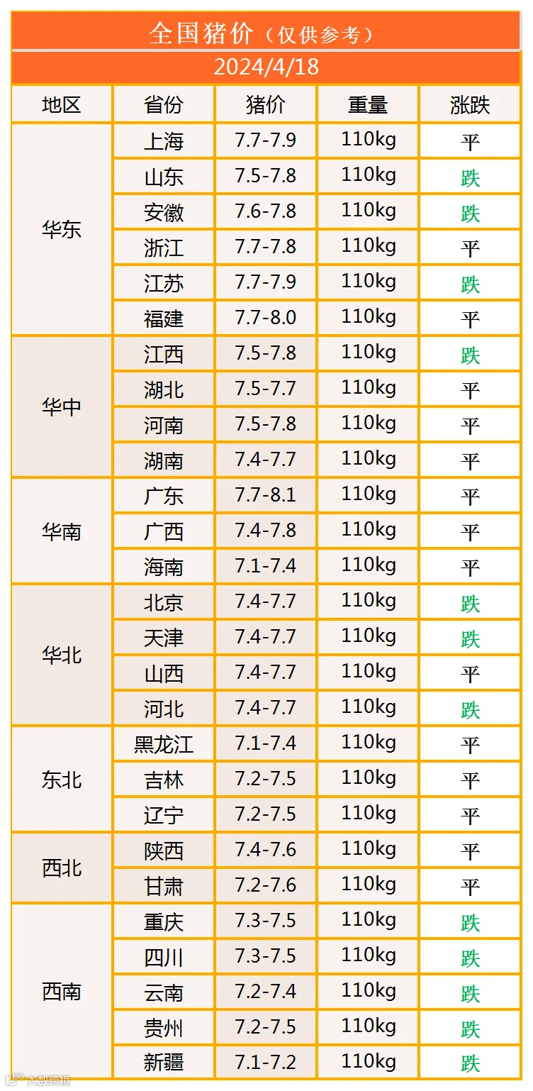明日猪价2024年4月18日猪价信息