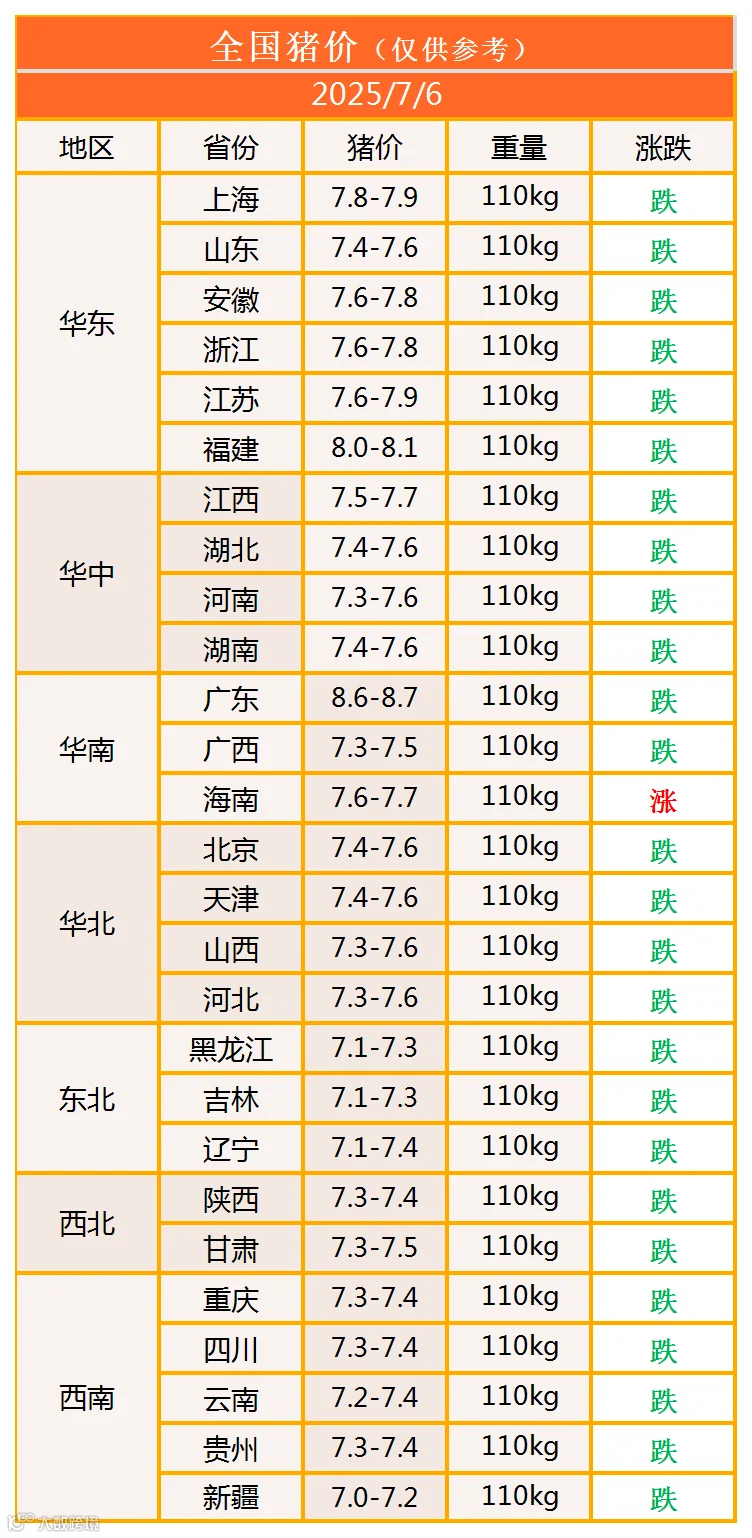 明日猪价2025年7月6日猪价信息