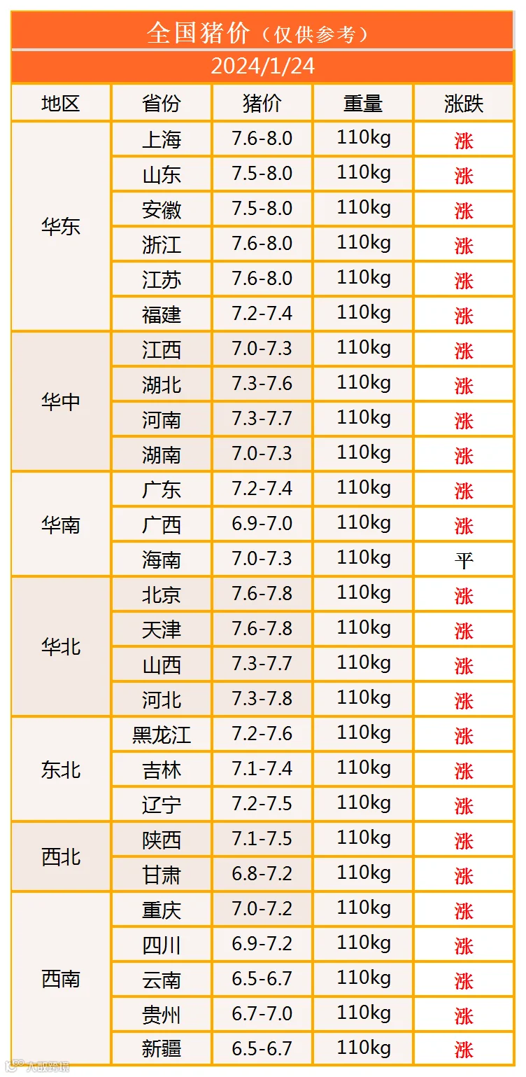 明日猪价2024年1月24日猪价信息