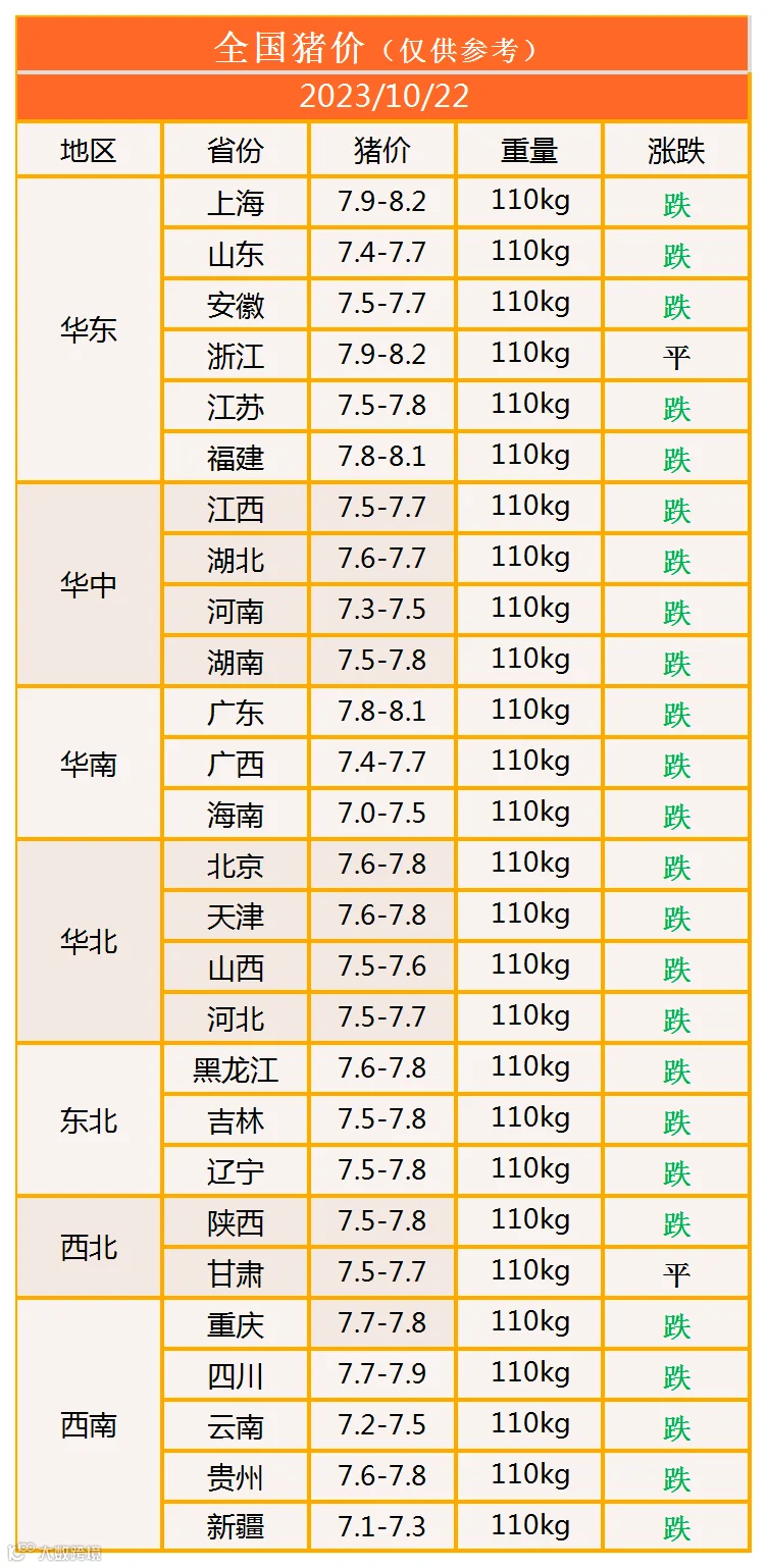 明日猪价2023年10月22日猪价信息