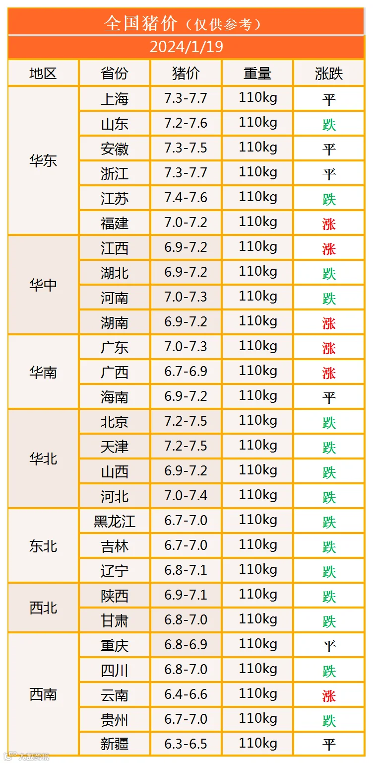 明日猪价2024年1月19日猪价信息
