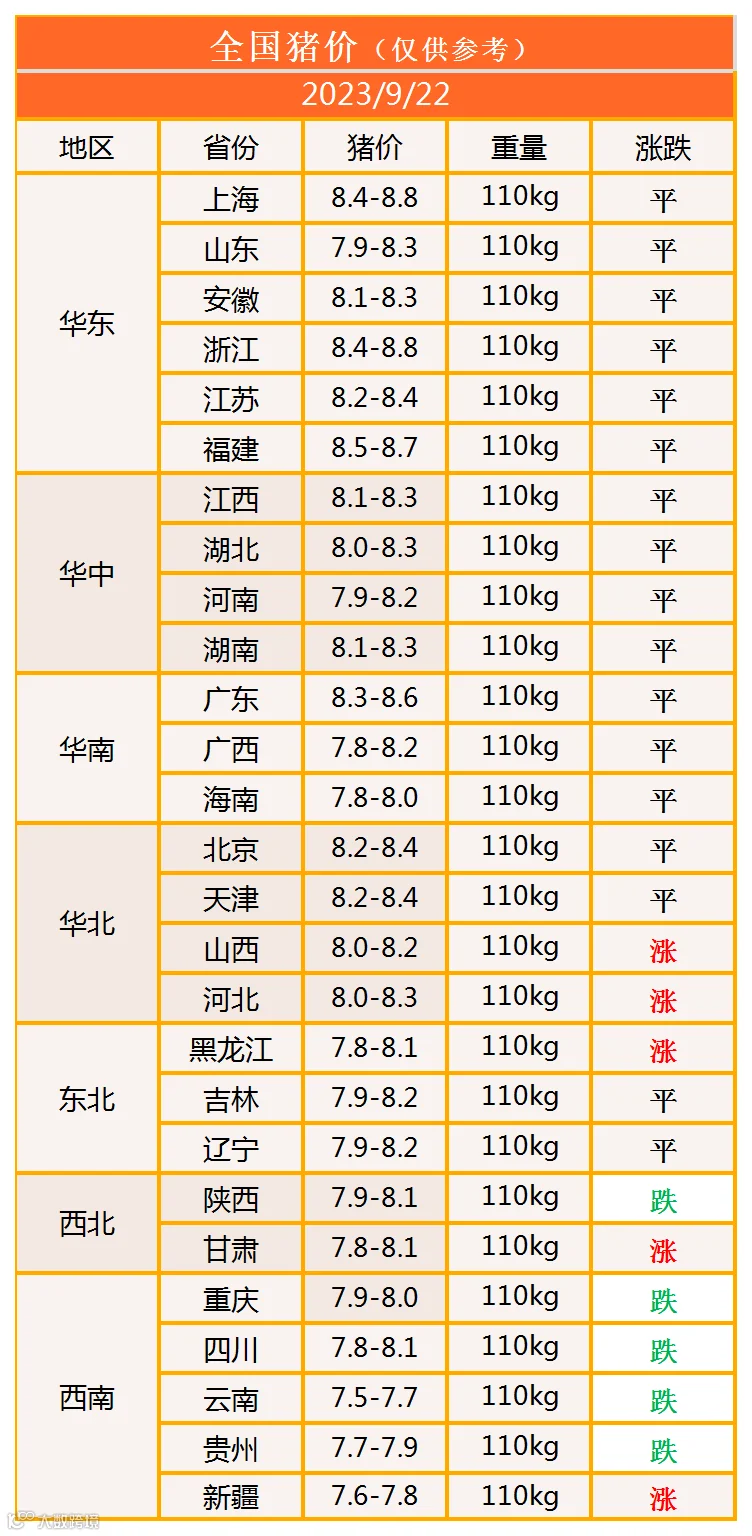 明日猪价2023年9月22日猪价信息