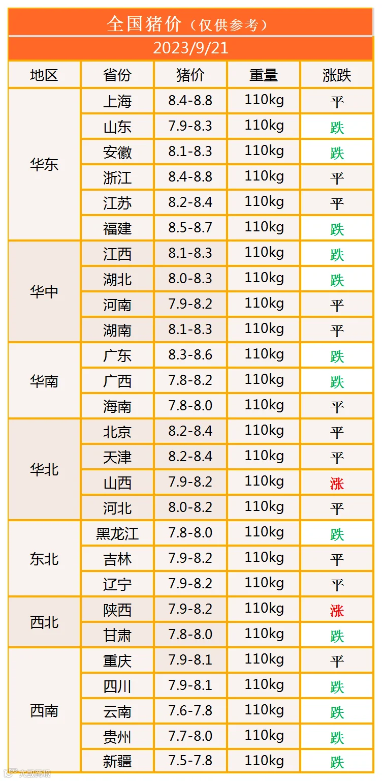 明日猪价2023年9月21日猪价信息