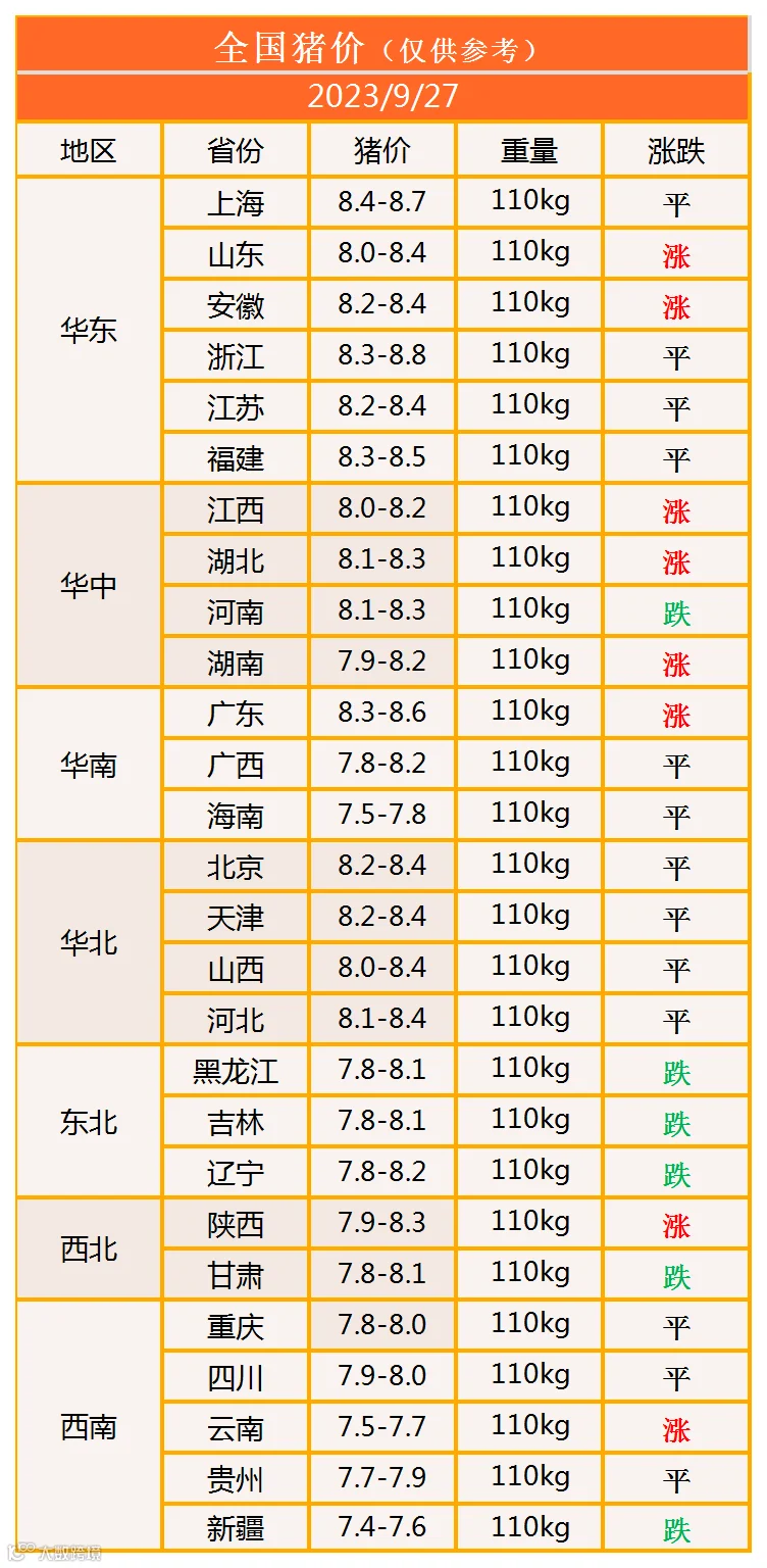 明日猪价2023年9月27日猪价信息