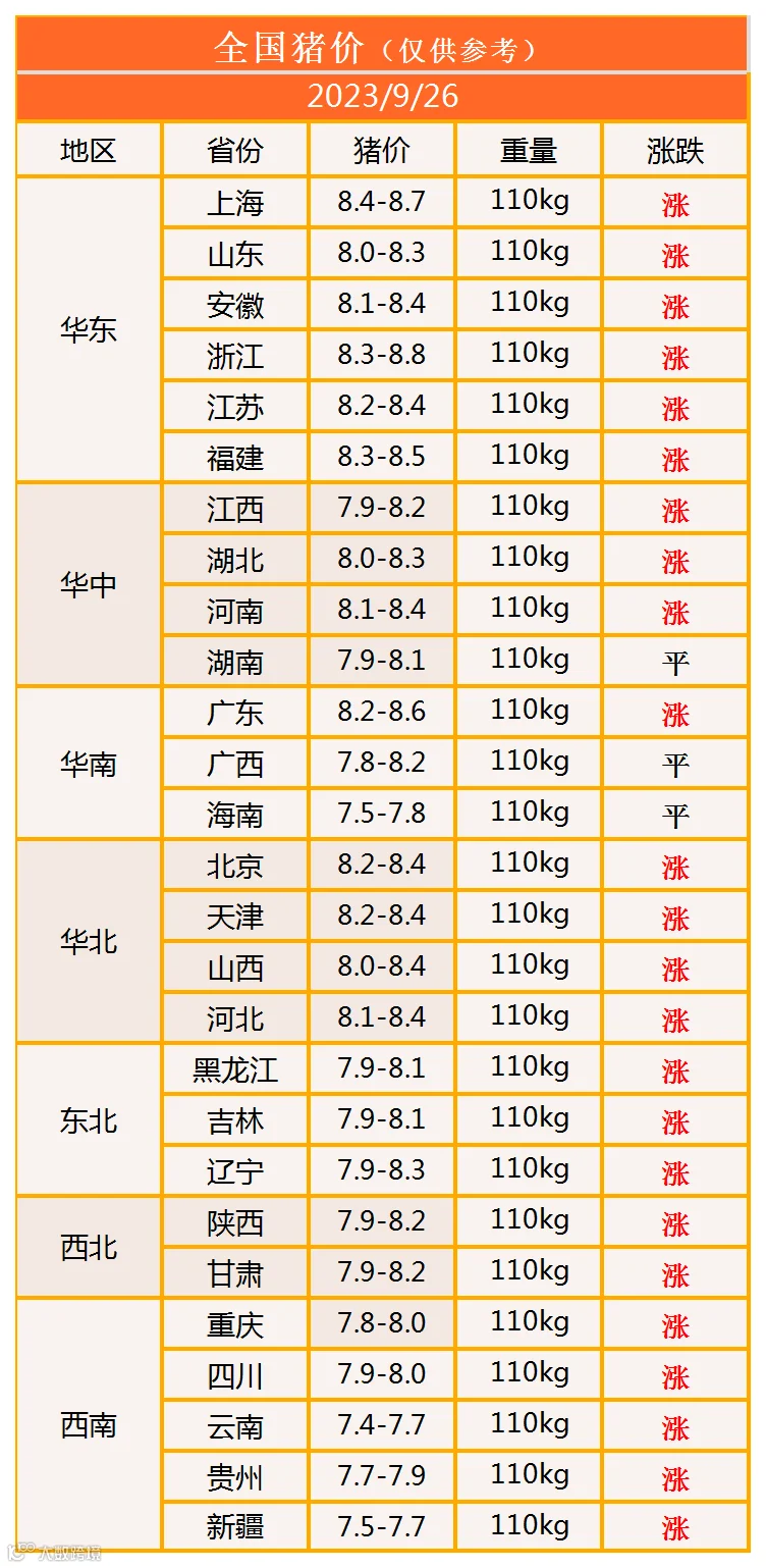 明日猪价2023年9月26日猪价信息