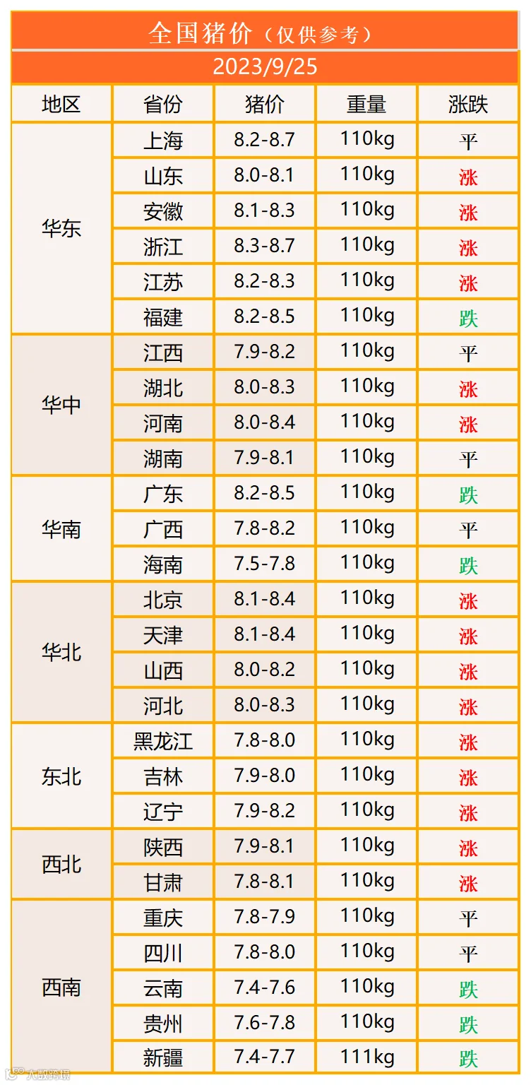 明日猪价2023年9月25日猪价信息