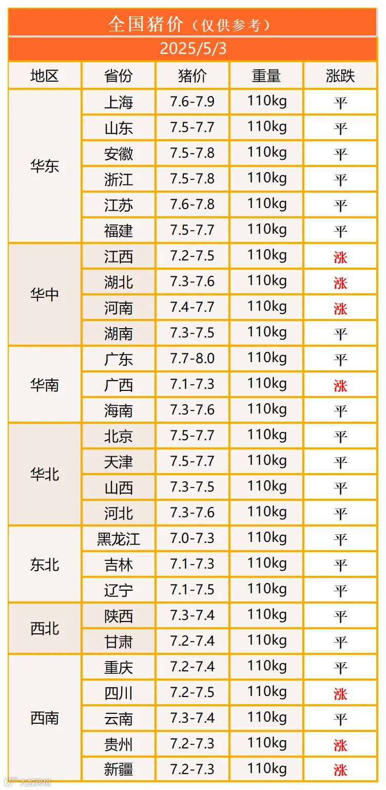 明日猪价2025年5月3日猪价信息