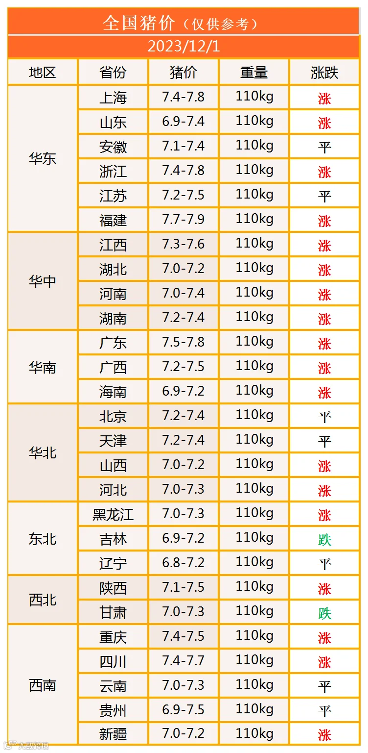 明日猪价2023年12月1日猪价信息
