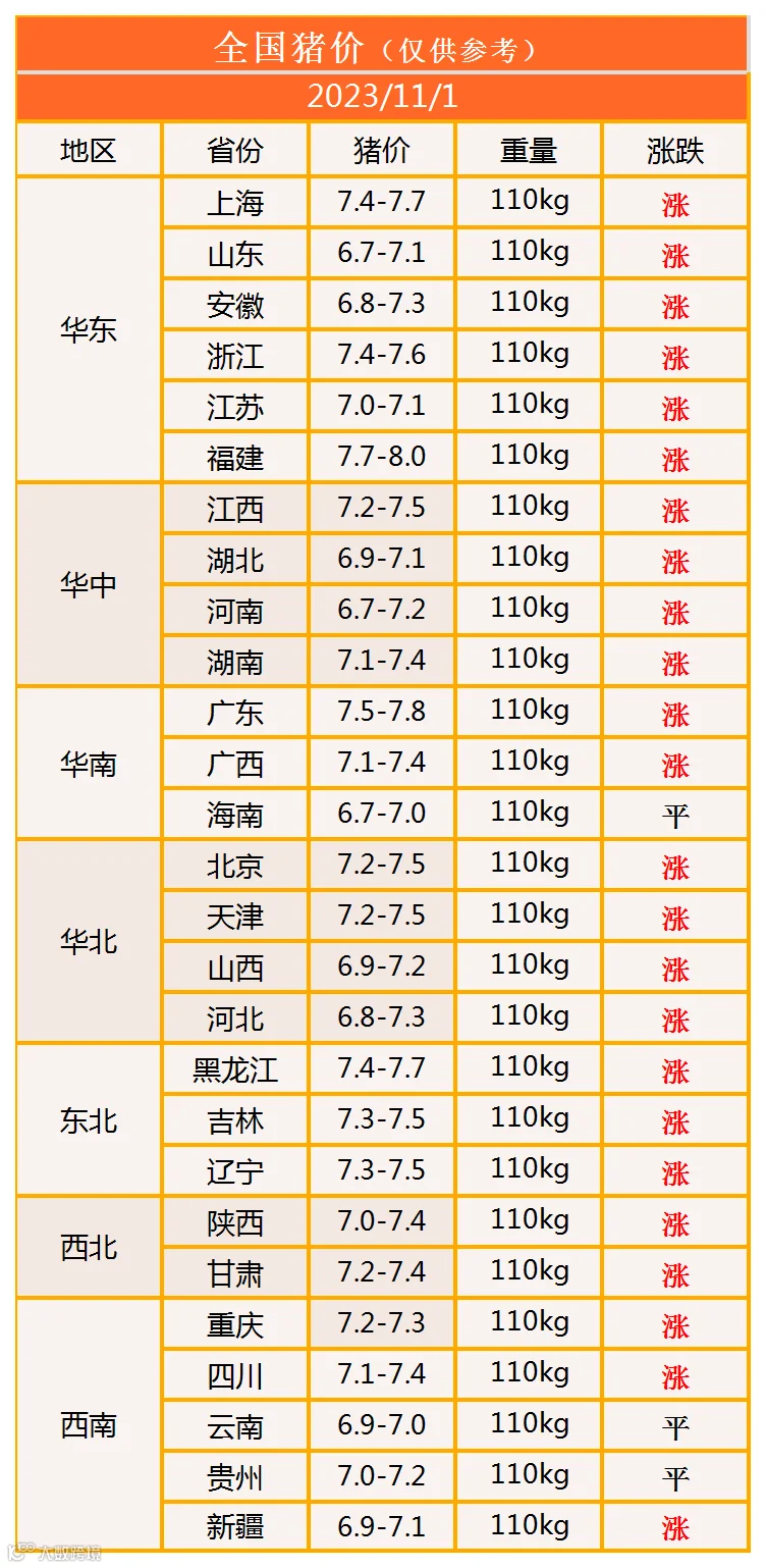 明日猪价2023年11月1日猪价信息