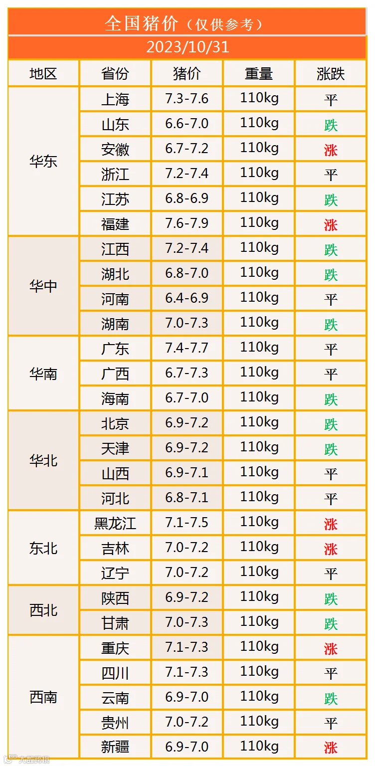 明日猪价2023年10月31日猪价信息