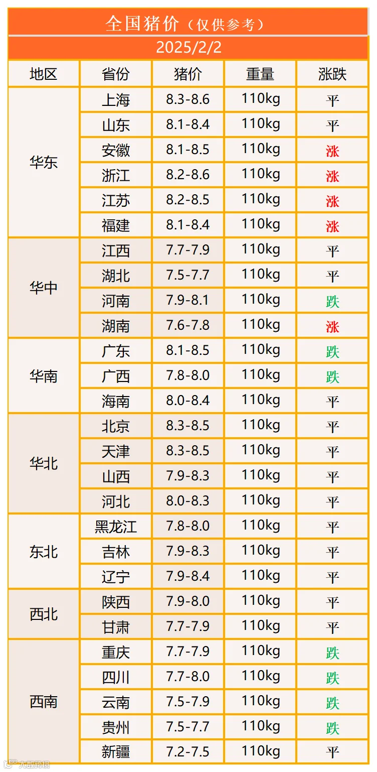 明日猪价2025年2月2日猪价信息