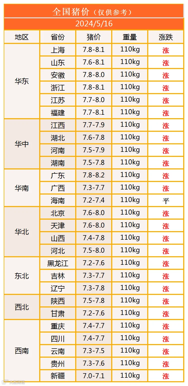 明日猪价2024年5月16日猪价信息