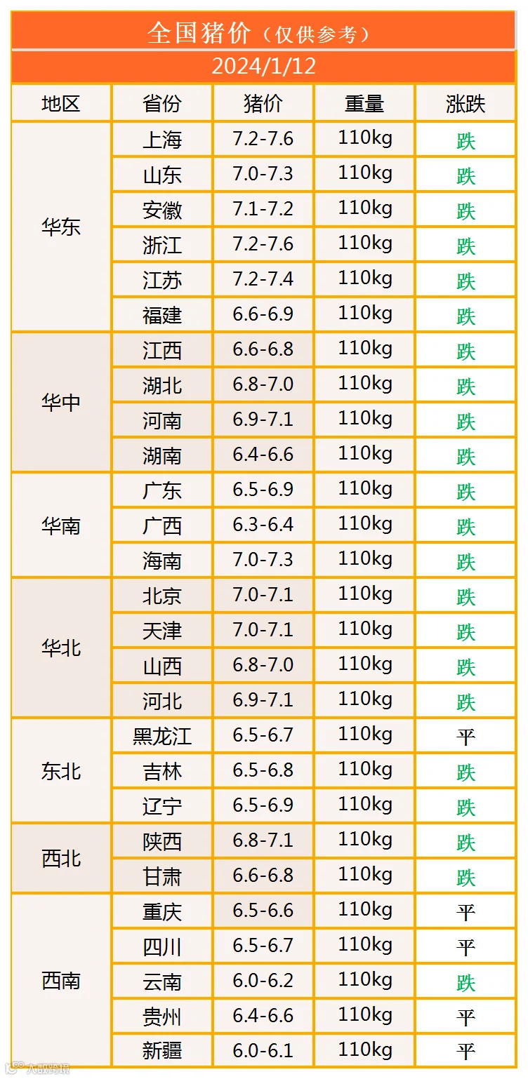 明日猪价2024年1月12日猪价信息