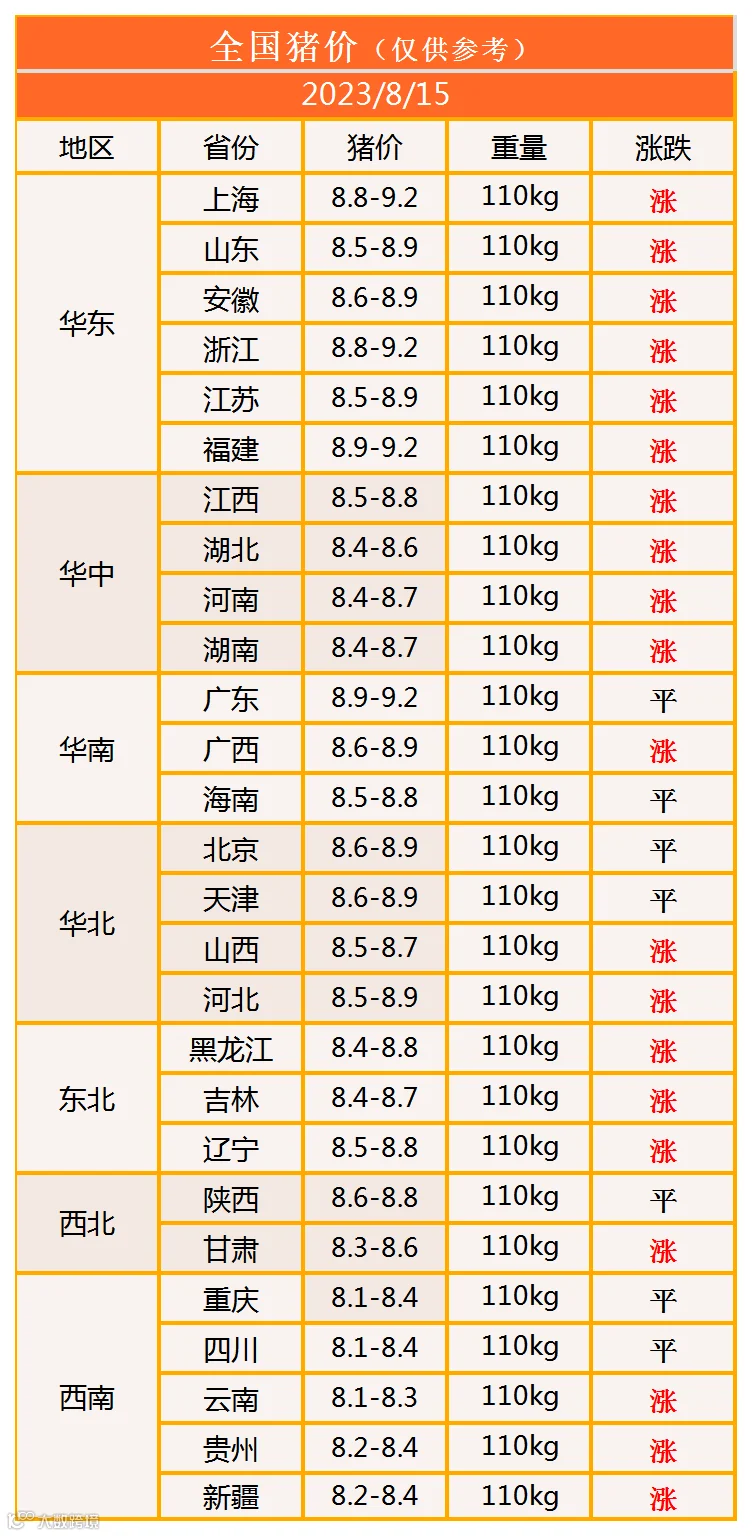 明日猪价2023年8月15日猪价信息