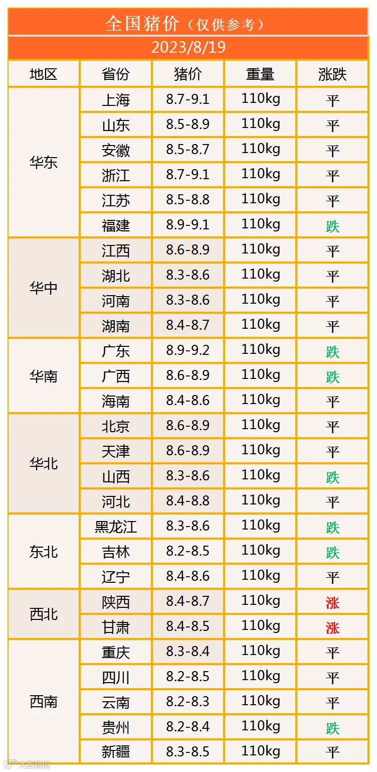 明日猪价2023年8月19日猪价信息
