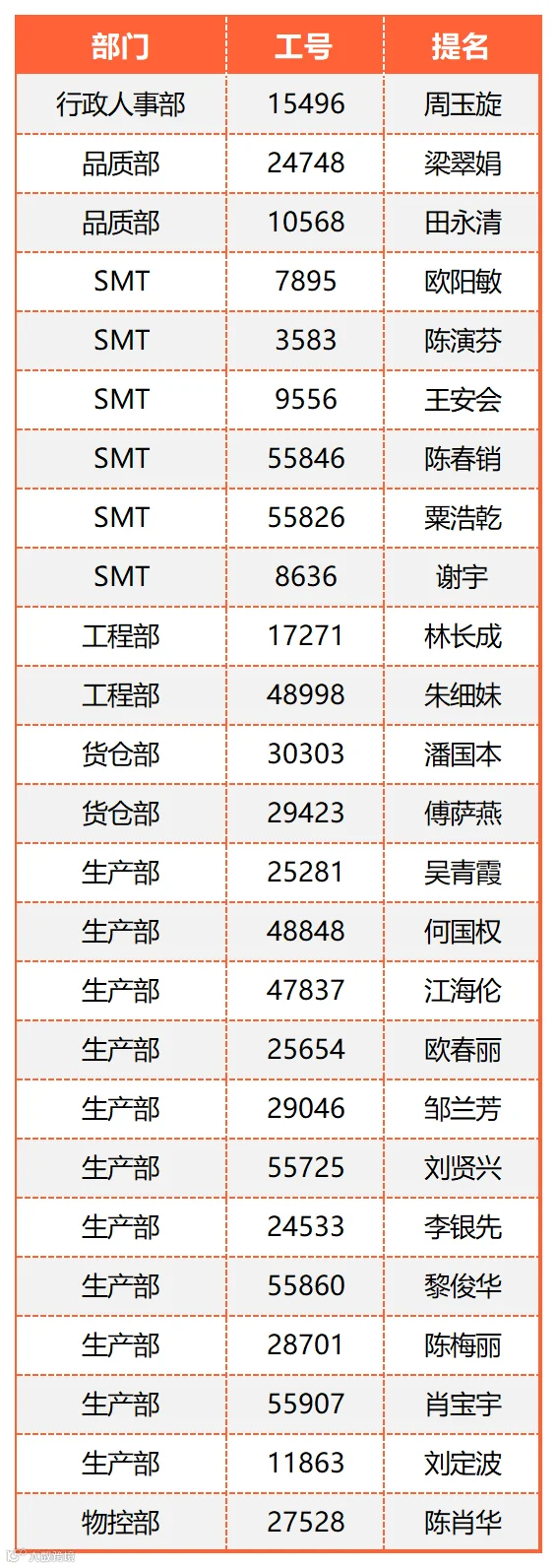 以上获奖人员是第三季度的优秀代表,他们用实际行动证明了在平凡的岗位上也能做出不平凡的贡献,是大家学习的榜样和楷模,成绩只能代表过去,未来任重而道远,希望他们今后,在自己的岗位上继续发挥“工匠精神”,再接再厉!再创佳绩!