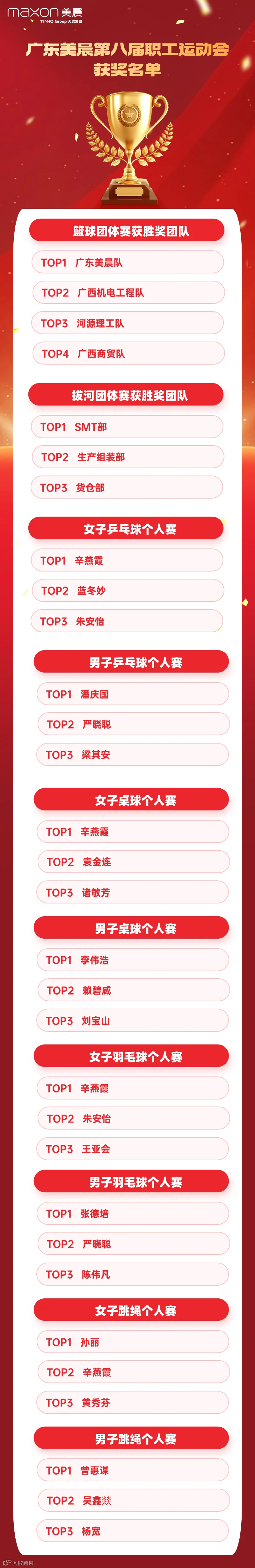 运动点燃激情,拼搏展现风采。历时半个月的激烈角逐,精彩纷呈的广东美晨第八届职工运动会于11月20日晚在园区前台处圆满闭幕。