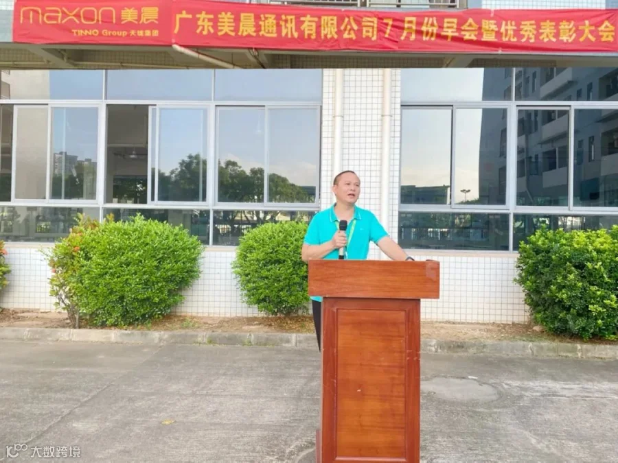 阳光明媚的早晨,我们有序地进行了7月份的早会,本次早会由广东美晨通讯有限公司副总经理陶万佐先生主持讲话。陶总对上个月公司的产量、质量等情况作了总结,并强调每个岗位要尽职尽责,我们要做出更好品质的产品!再接再励,再创辉煌!