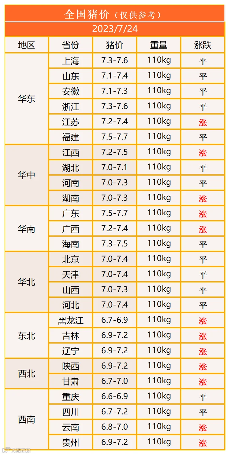 明日猪价2023年7月24日猪价信息