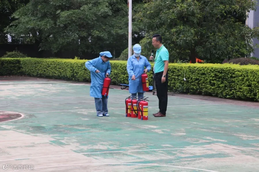 现场总指挥向全体员工讲解了灭火器的使用方法,并通过灭火器的使用注意事项和现场员工逐一进行规范指导实操,一提、二拔、三压,帮助员工熟练掌握灭火器的实操技能。