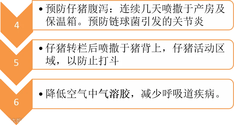 4、对于仔猪流行性腹泻和其他病毒性疾病有很好的防控效果。5在猪舍使用安全(生石灰对动物黏膜有腐蚀性,哪怕是遇水后的气味,也会有刺激性,增加动物的应激。特别是近地面处,猪的体高较低,对猪的影响比人大。建议使用在猪舍外!)