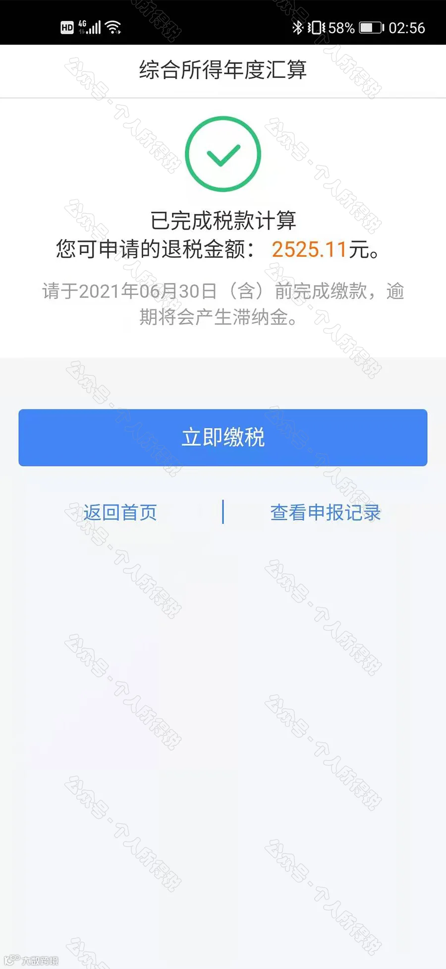 若您收入不足12万元且有应补税额,或者收入超出12万元但应补税额≤400元,申报提交后无需缴款,点击享受免申报。