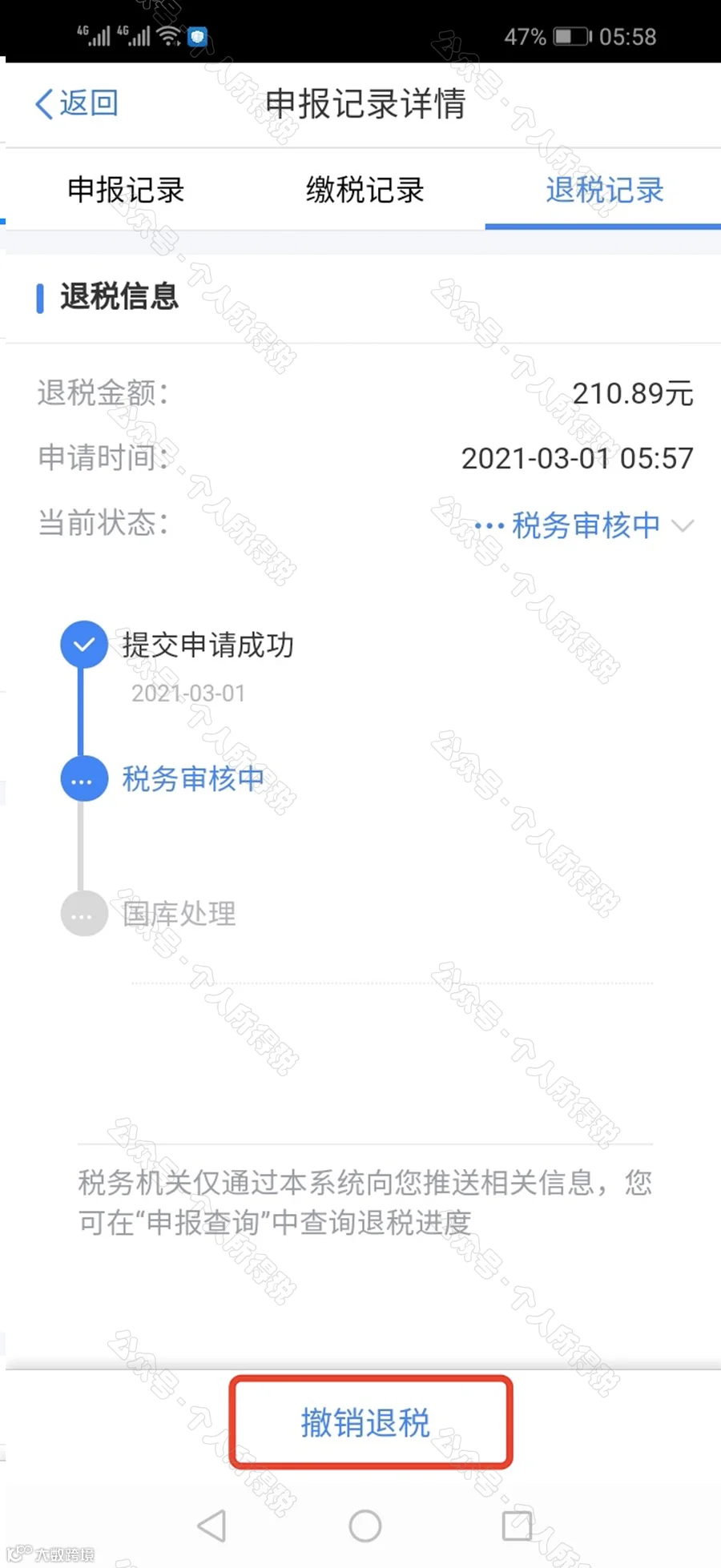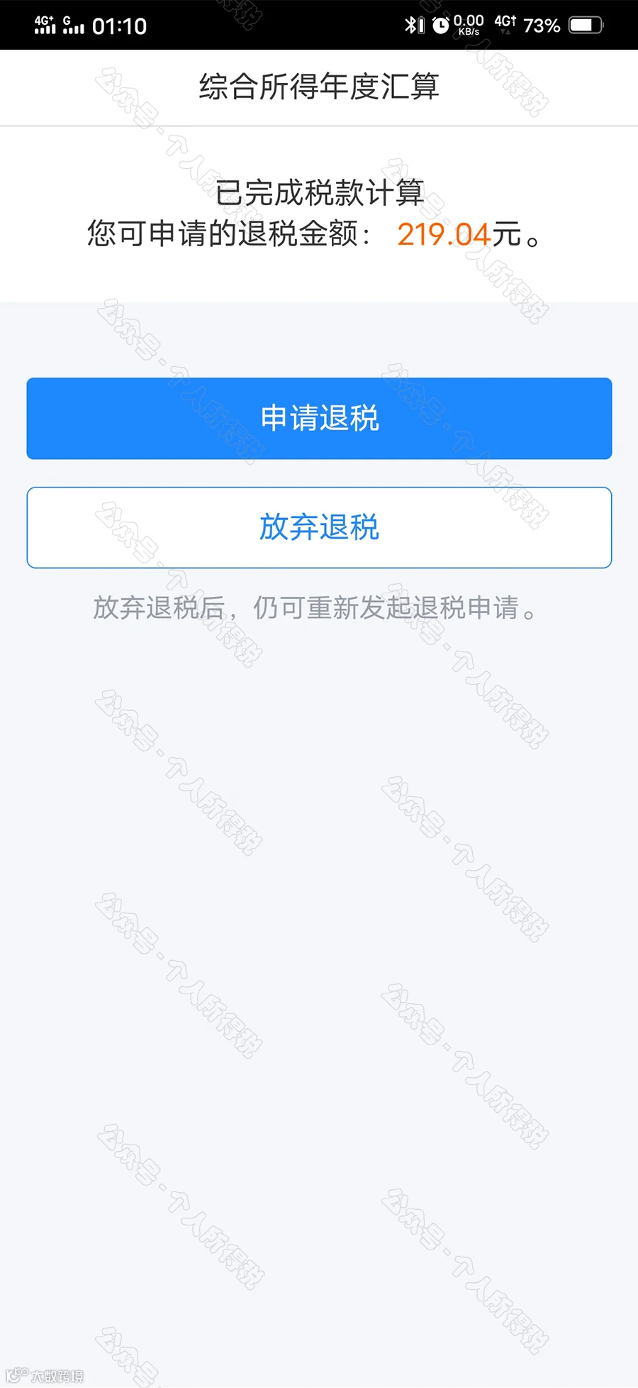 如果您的银行卡不在身边,或者暂时不想退税,可以点击【暂不处理,返回首页】,后续可再次发起退税申请。