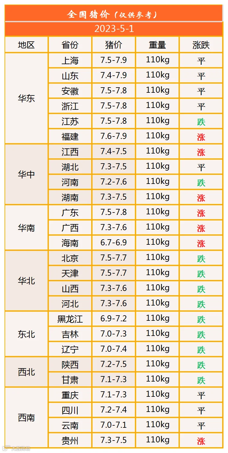 明日猪价2023年5月1日猪价信息