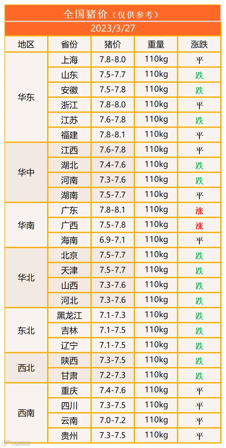 明日猪价2023年3月27日猪价信息