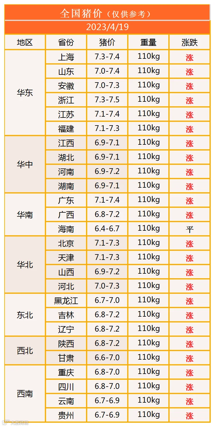 明日猪价2023年4月19日猪价信息