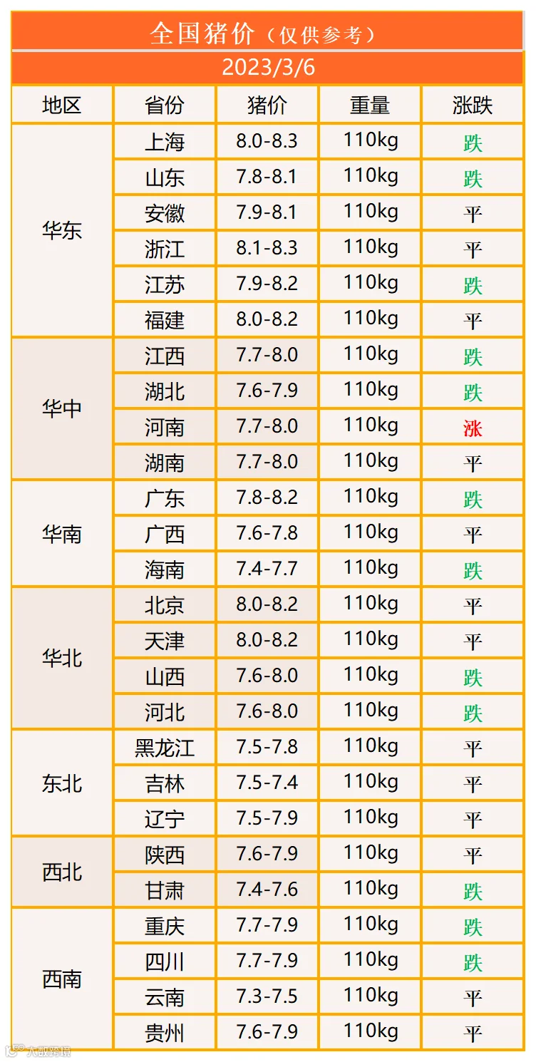 明日猪价2023年3月6日猪价信息