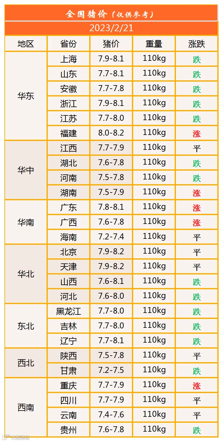 明日猪价2023年2月21日猪价信息