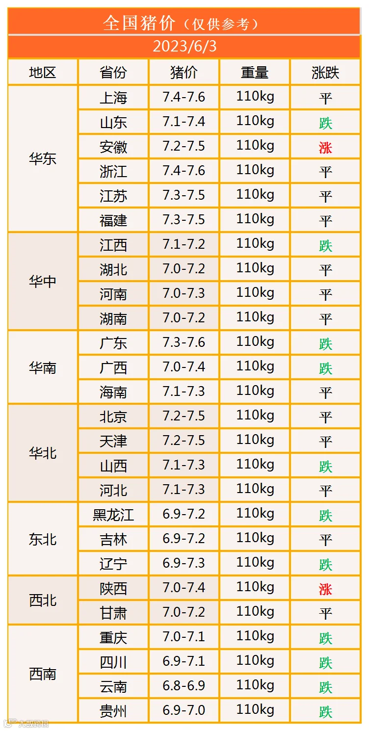 明日猪价2023年6月3日猪价信息