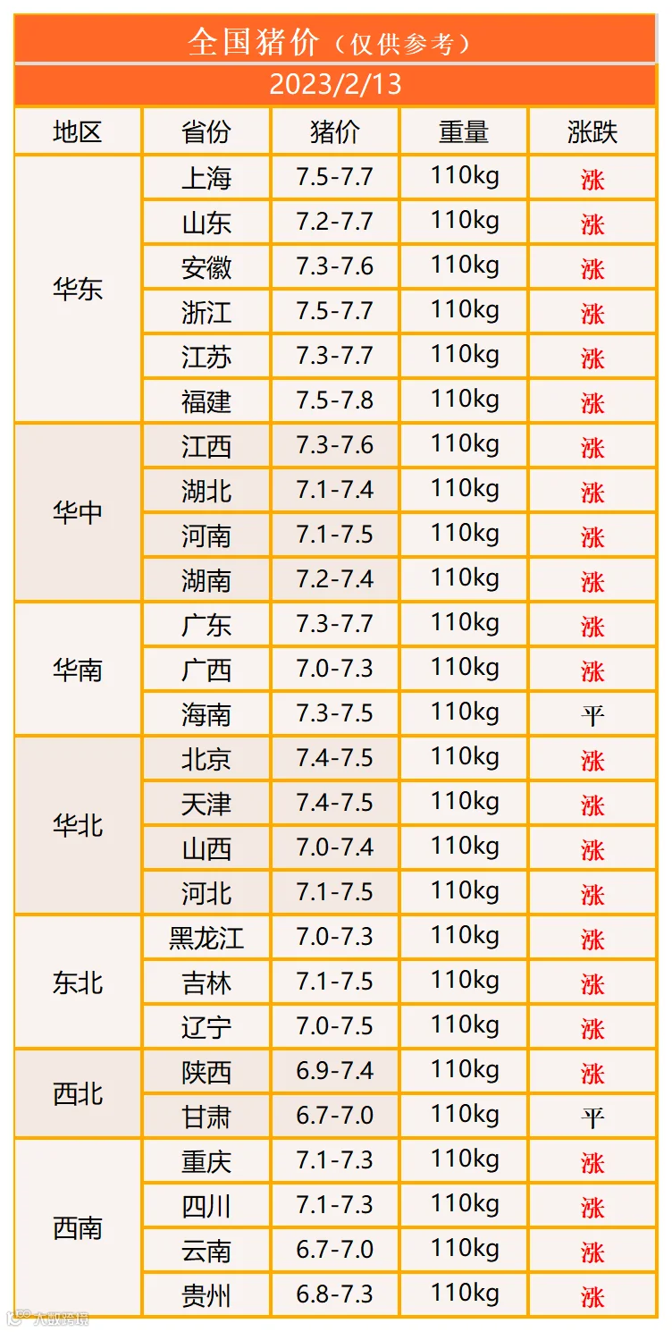 明日猪价2023年2月13日猪价信息