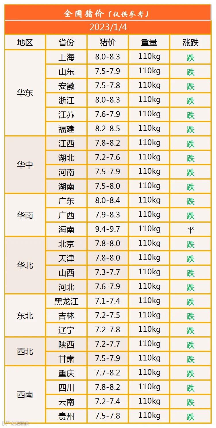明日猪价2023年1月4日猪价信息
