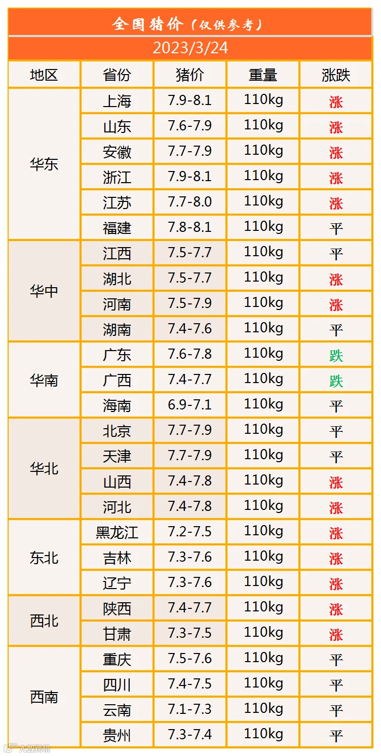 明日猪价2023年3月24日猪价信息
